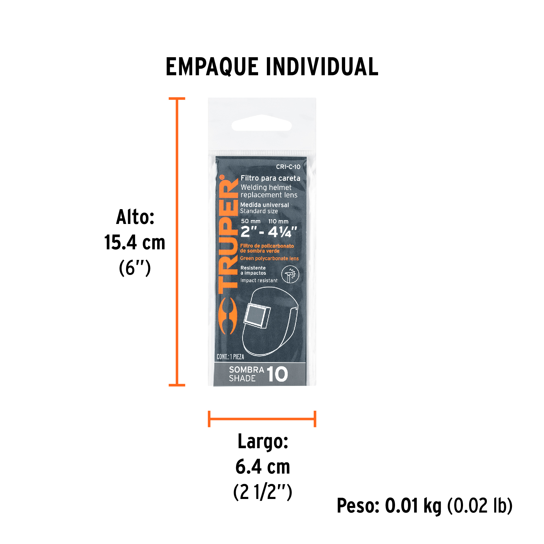 Lente sombra 10 para caretas CASO-3 y CASO-300-P, TRUPER
