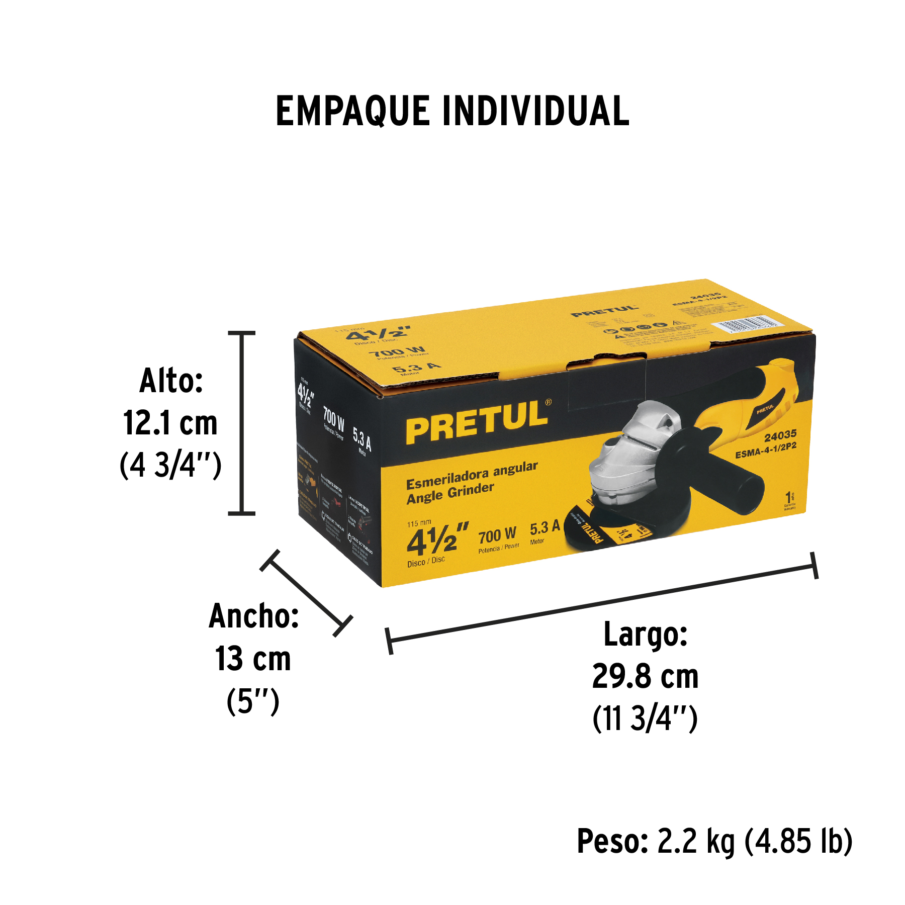 Esmeriladora angular 4-1/2", 700W, PRETUL