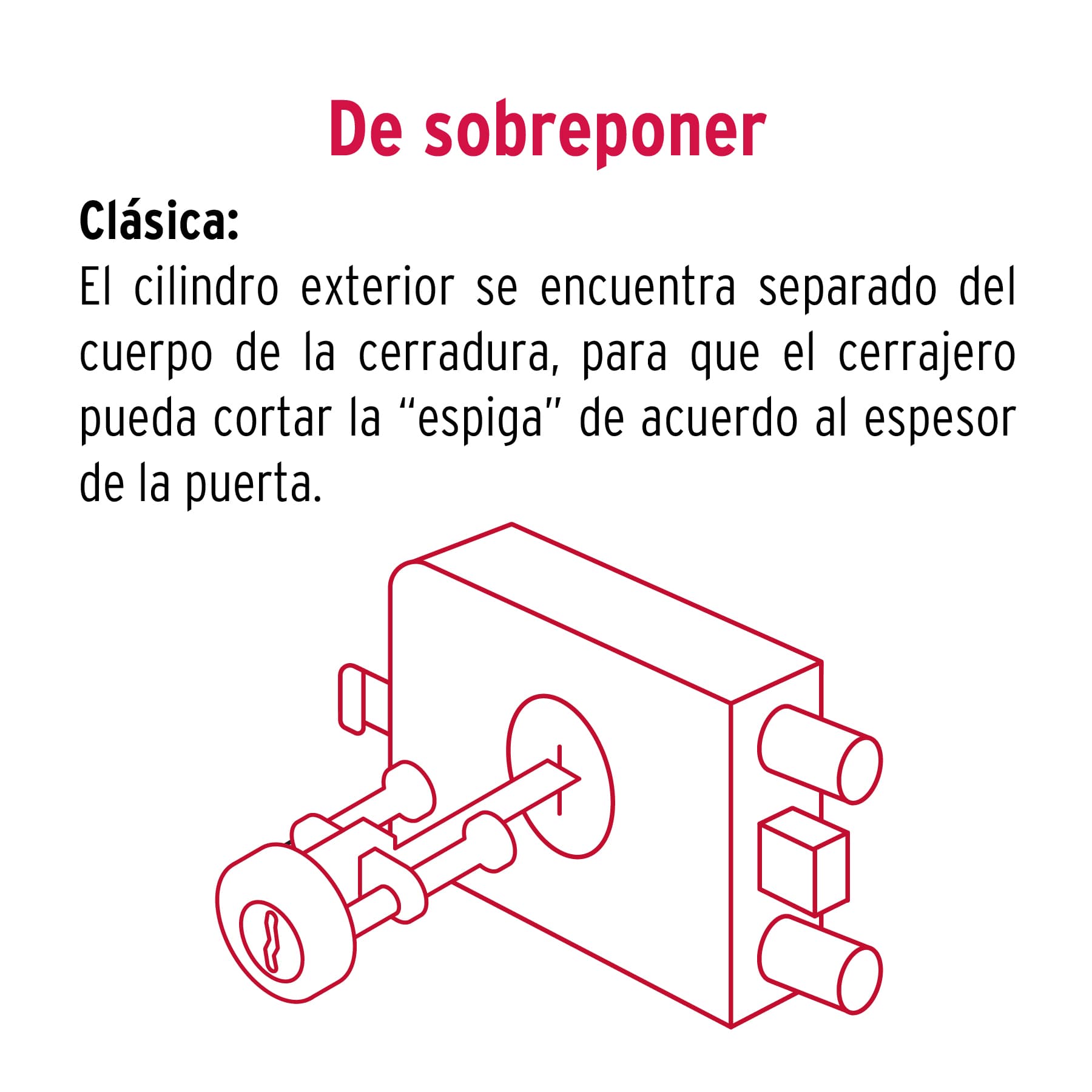 Cerradura sobreponer izq 2 barras clásica, llave tradicional