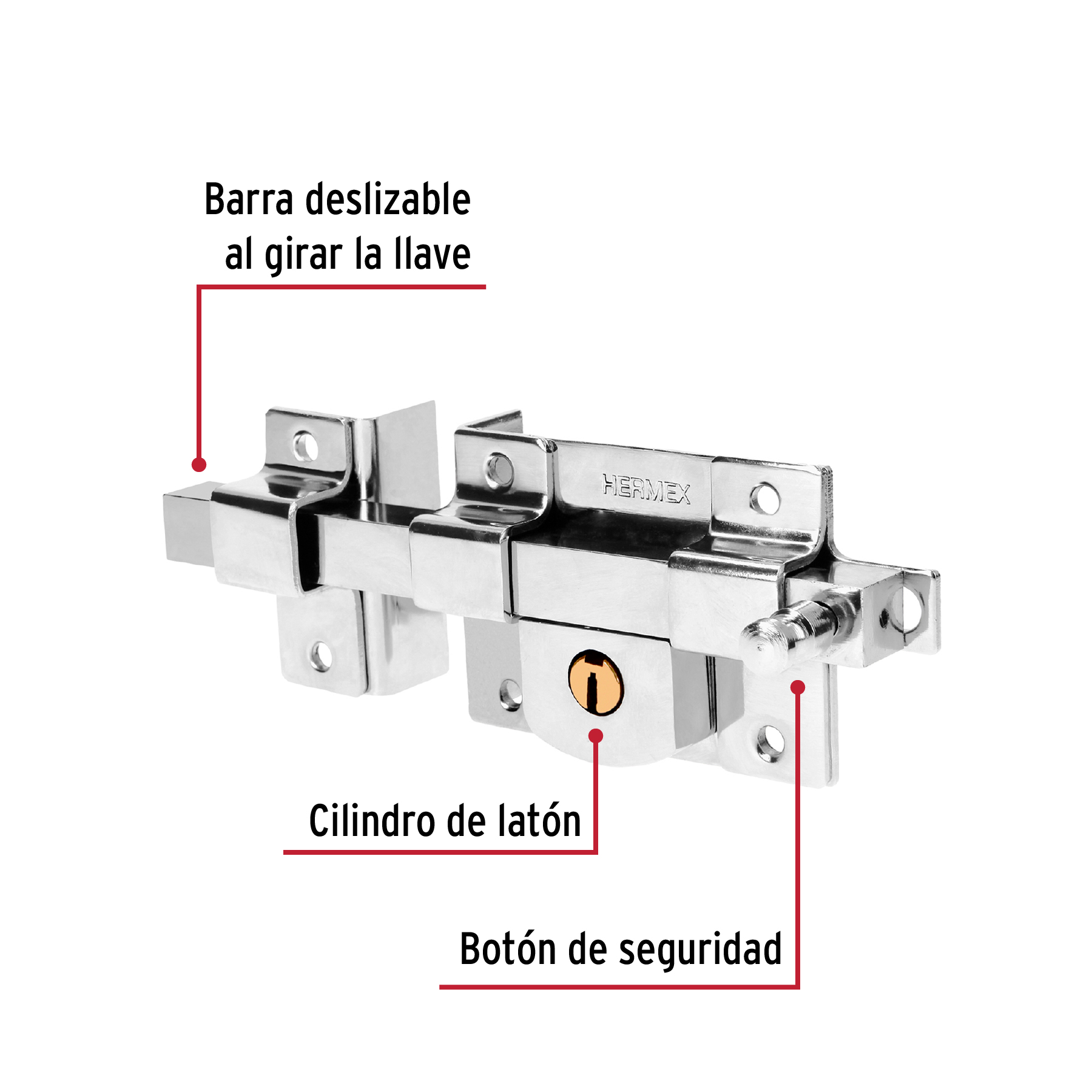 CERRADURA DE BARRA FIJA, IZQUIERDA, BLÍSTER, HERMEX