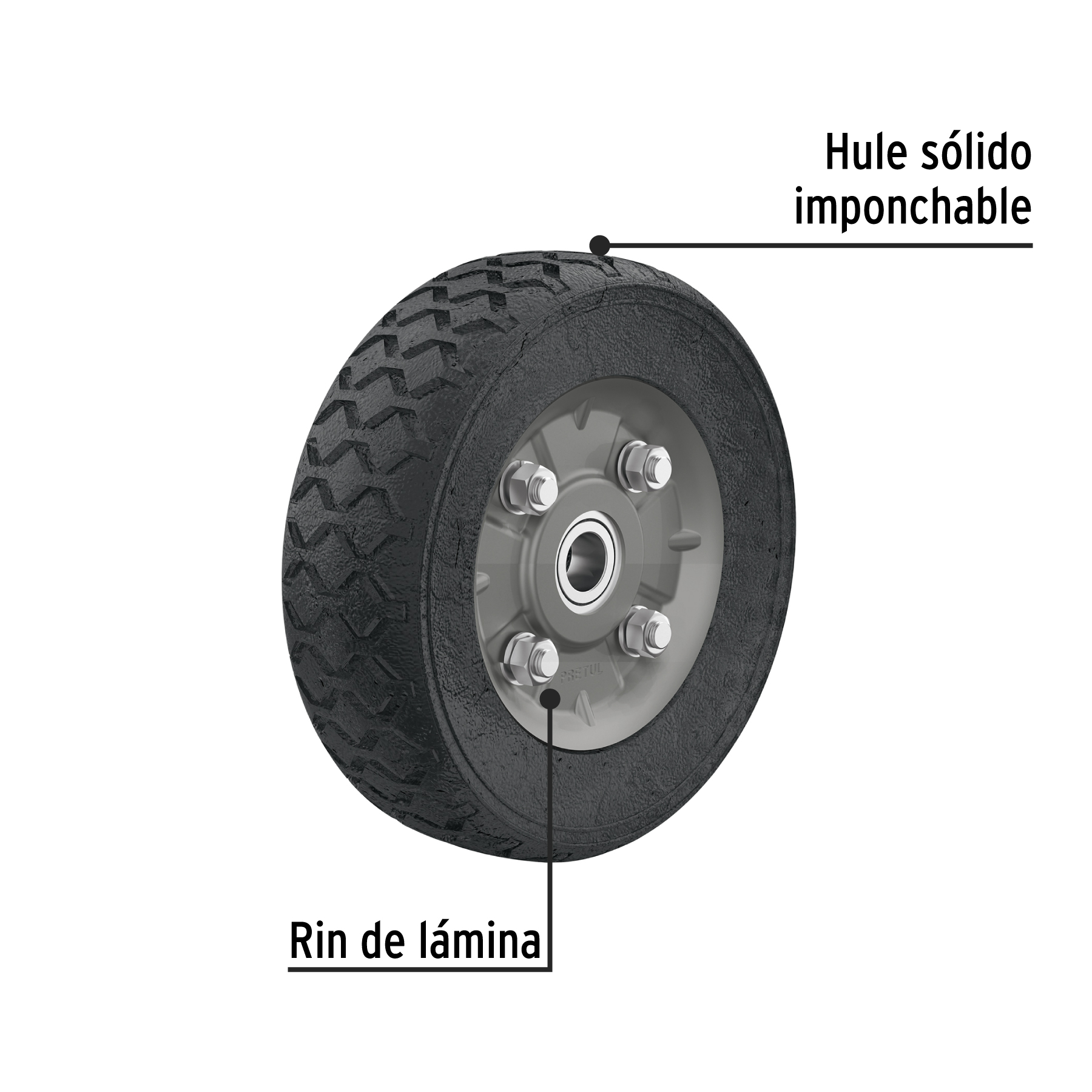 Rueda de hule sólido 7" para diablo, doble balero, Pretul