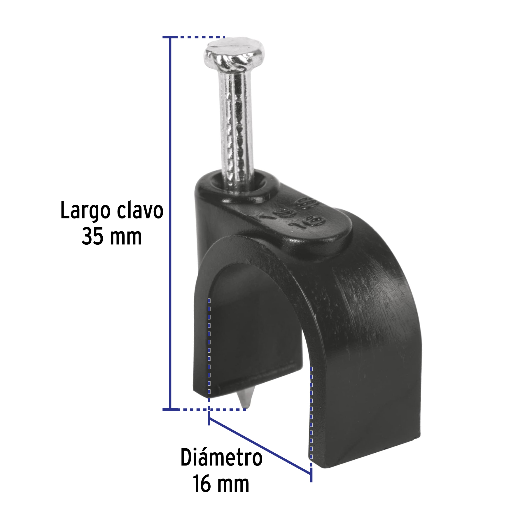 BOLSA CON 20 GRAPAS NEGRAS DE 16 MM PARA CABLE REDONDO
