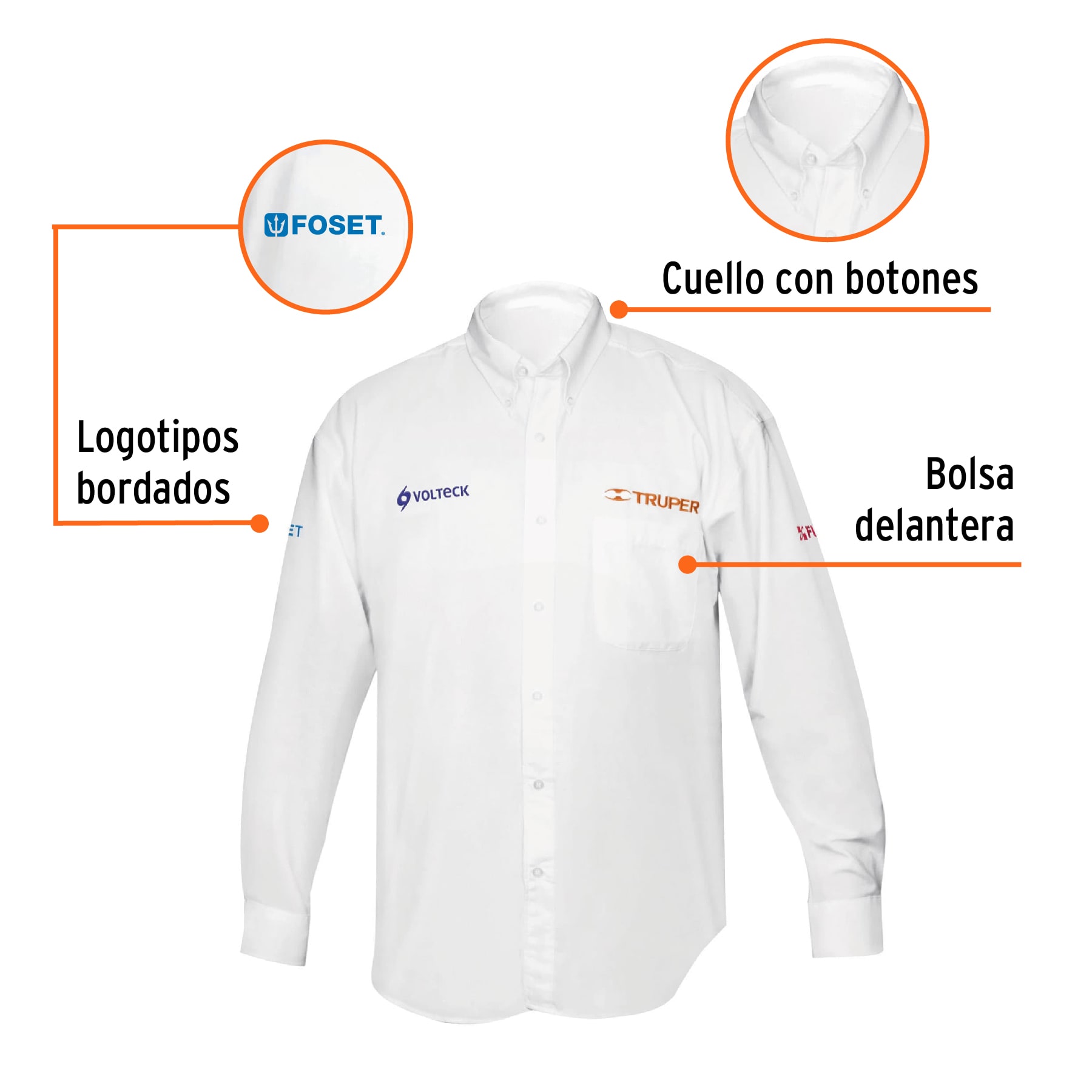 CAMISA BLANCA PARA CABALLERO, MANGA LARGA, TALLA EG, TRUPER
